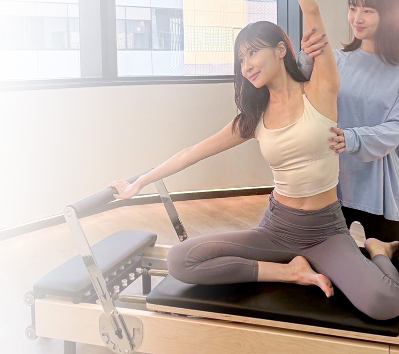 専用マシンのリフォーマーを使うことで少ない負荷で体幹やインナーマッスルを鍛えられるため、身体の変化を実感しやすく気になる部位にも効率的にアプローチが可能。