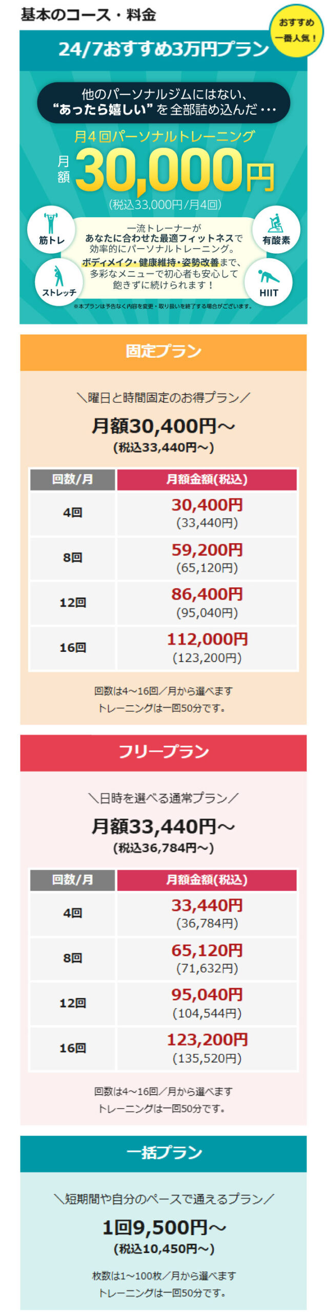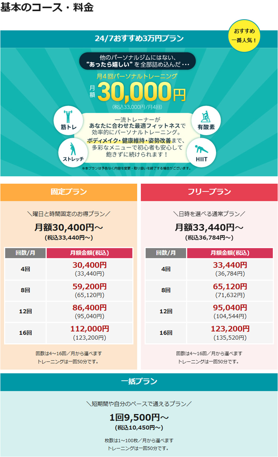 条件に応じて、さらに低価格なプランやペアトレーニングなど多様な選択肢をご用意しております。